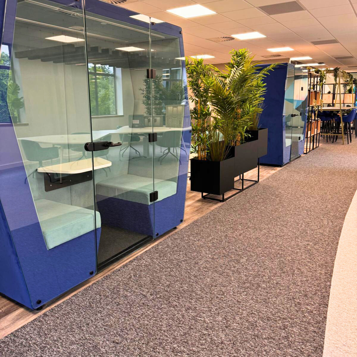 Impellum refreshed its Luton site, and Verve was there to help bring its Innovative and creative design plans to reality. Impellum have a flexible working environment outlook and wants their people to feel empowered and healthy to work in a way that improves mental wellbeing. Verve has created a space that allows version break out, collaboration, reflection and desk working to fit this brief, incorporating a strong brand regintion.