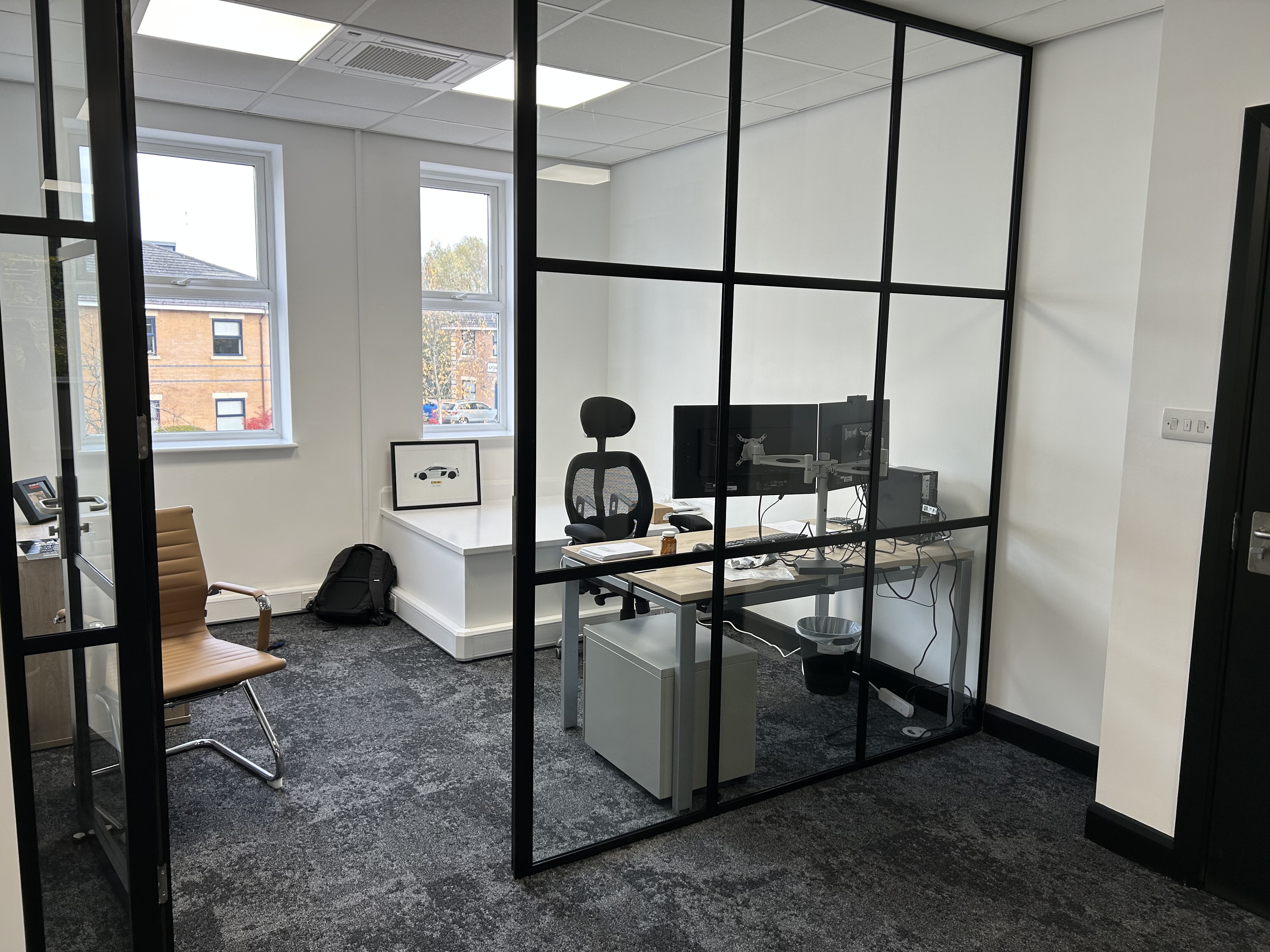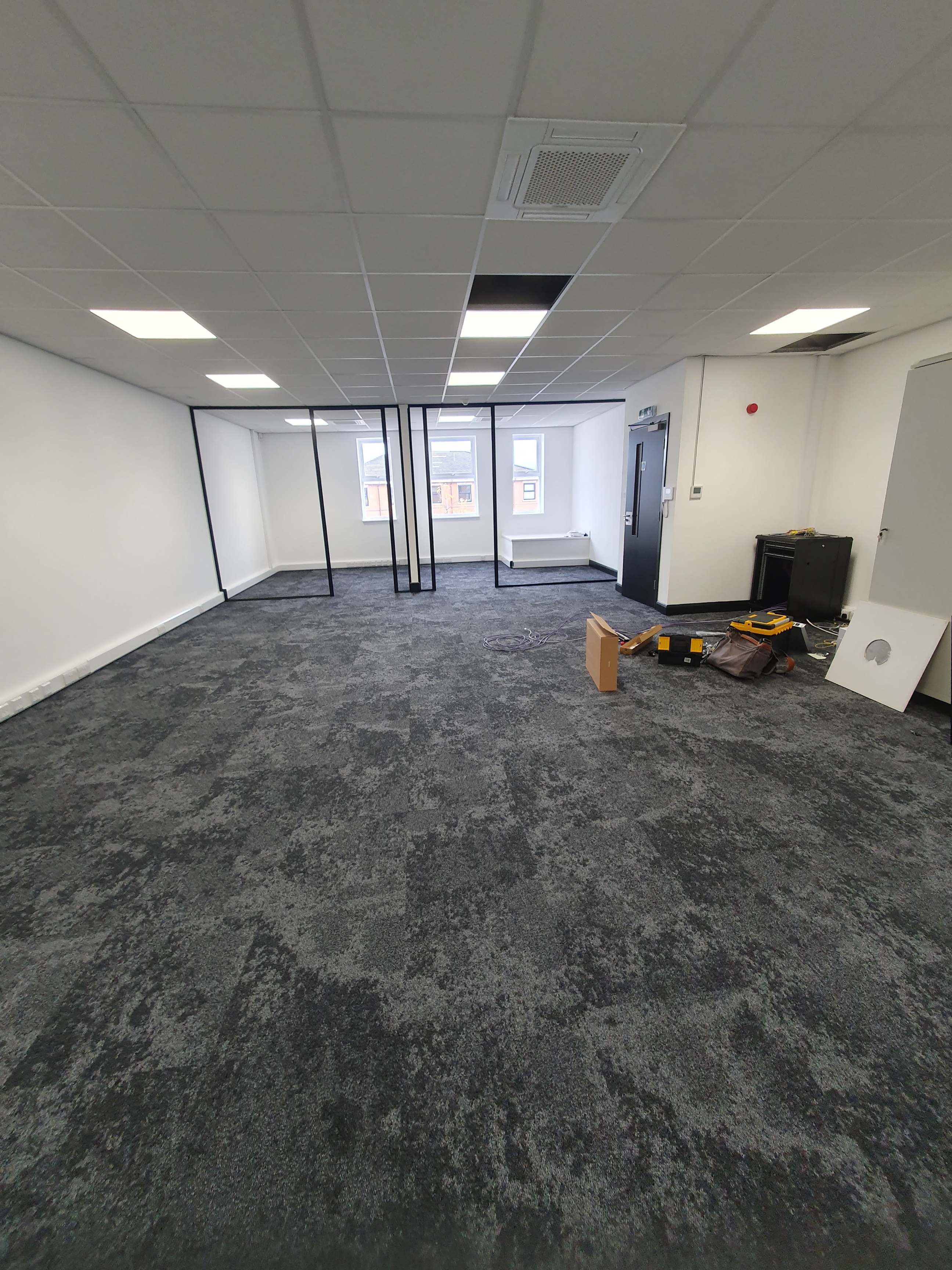 Northamptonshire-based Nene Group chose Verve to fully refurbish their newly taken-on office space in the autumn of 2023. The office was a great blank canvas, and Nene had a vision to create a space with a modern and homely feel for flexible working, with a mixture of full-time in office as well as bringing together remote workers for group meetings. Nene already had an idea of the layout they wanted, and Verve were able to develop these with some 3D designs to help visualise the overall design and colour scheme.